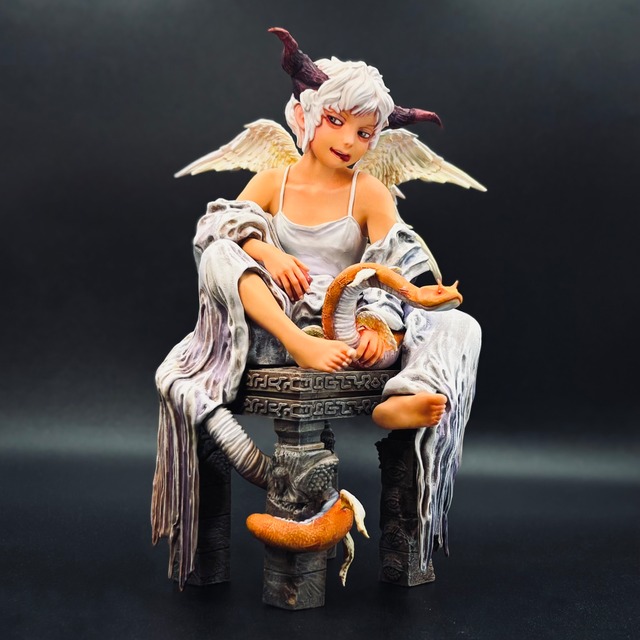 光も闇も罪もなくただ果実の香りに抱かれて [パーツ数] 24 [全高] 約180ミリ 無塗装、未組み立て *掲載画像は水性アクリル塗料による塗装サンプルです *ショーコレジンを使用しています この商品は「3Dプリンターによる光造形出力品」ですので、離型剤を落とす目的での洗浄は必要ありません 特にレジンの特性上、つけ置き洗いや煮沸洗浄をおこなうことで大変破損しやすくなります サポート跡は切れ味のよいデザインナイフやヤスリなどで処理してください デザイン上、とても薄い部分や尖ったパーツがあります お取り扱いの際には怪我などされませんよう、お気をつけください
